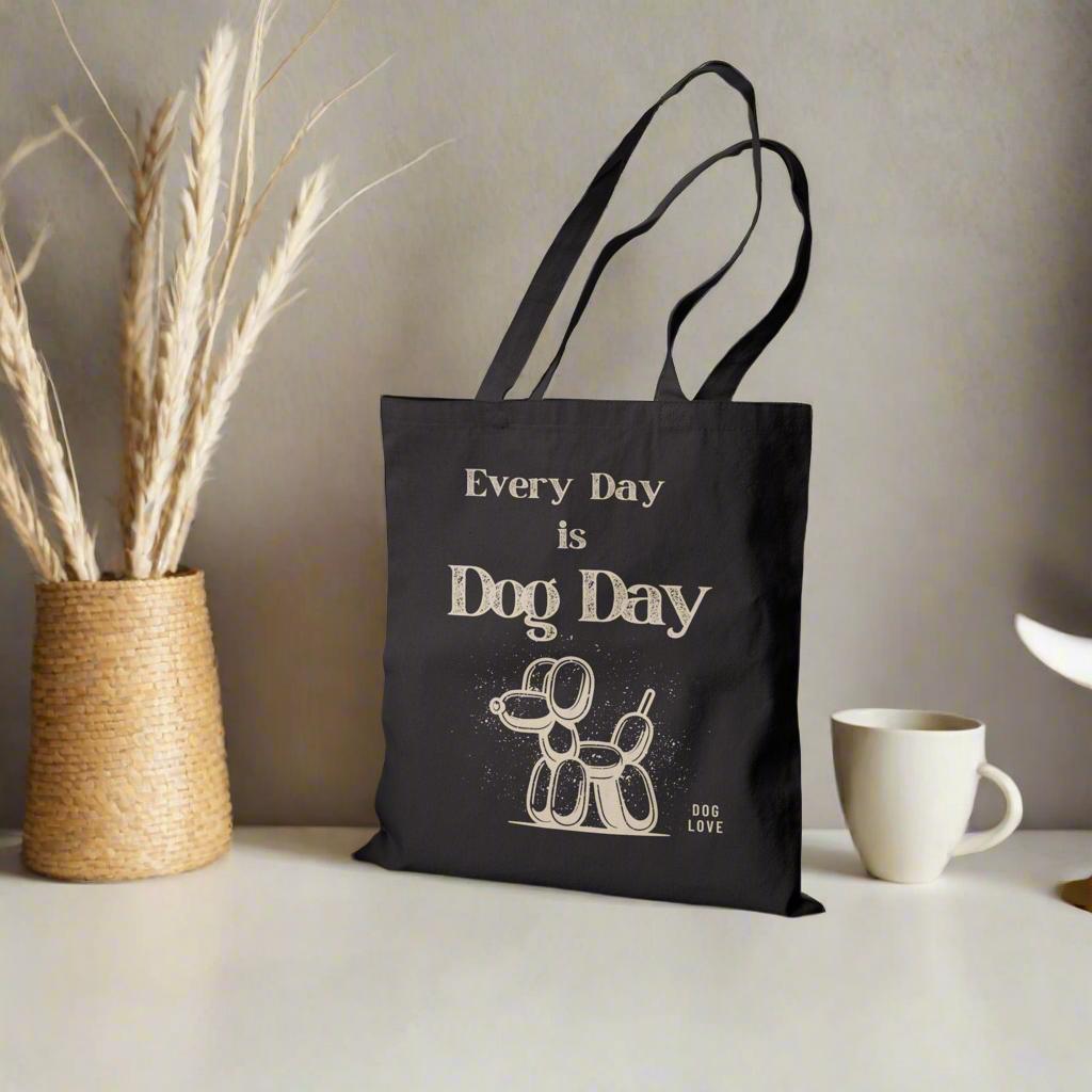 Celebrate your love for pups every single day with this fun, dog-lover-approved tote bag. Featuring a charming balloon-style dog and the bold message "Every Day is Dog Day," this eco-friendly cotton bag is perfect for carrying your essentials — or a few treats for your four-legged friend.