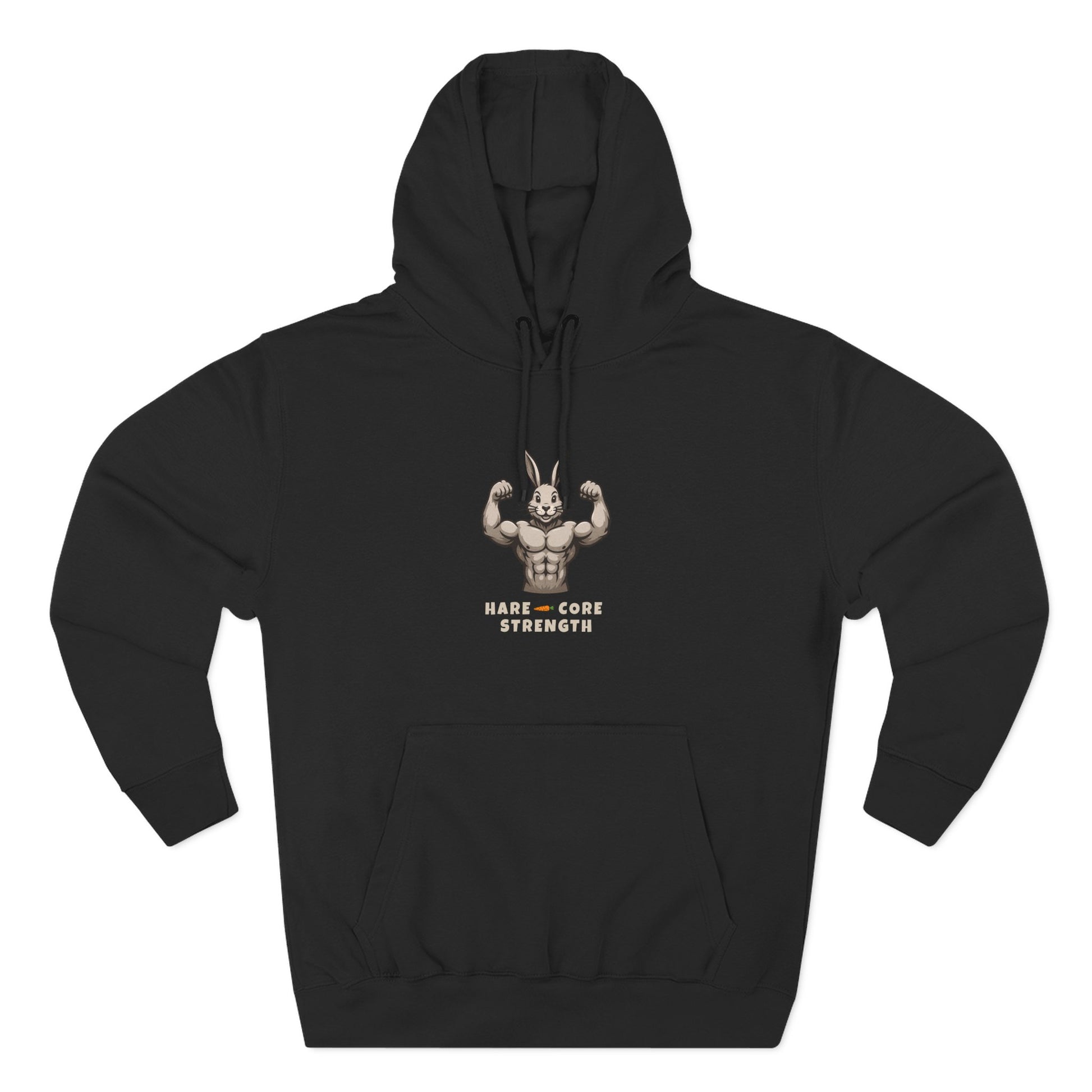 This hoodie brings the muscle and the mood, featuring our jacked-up bunny and the bold “Hare-core Strength” print. It’s soft, cozy, and built for everything from cheat days to chill days. Whether you're warming up, cooling down, or just showing off your gains in style, this one’s got your back.