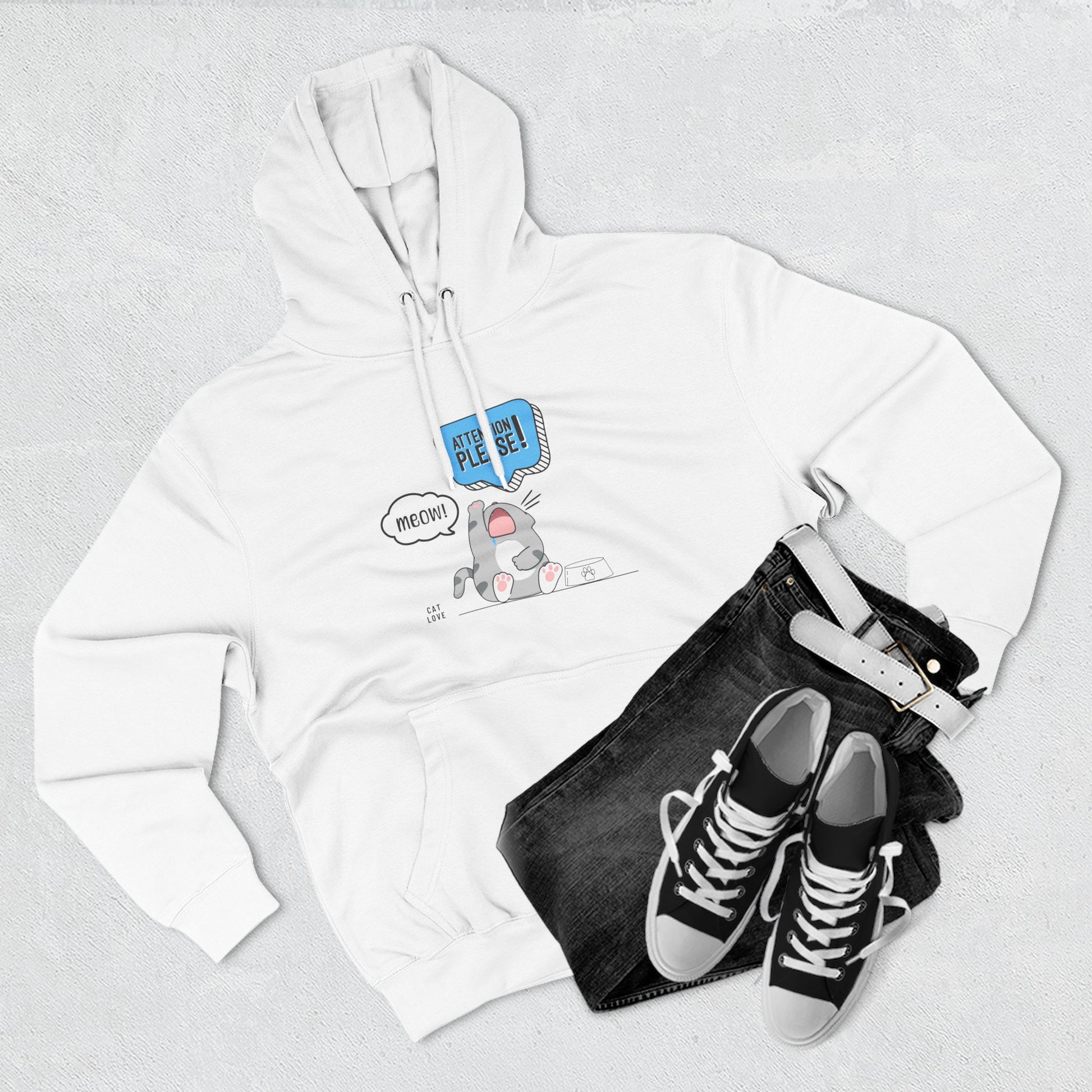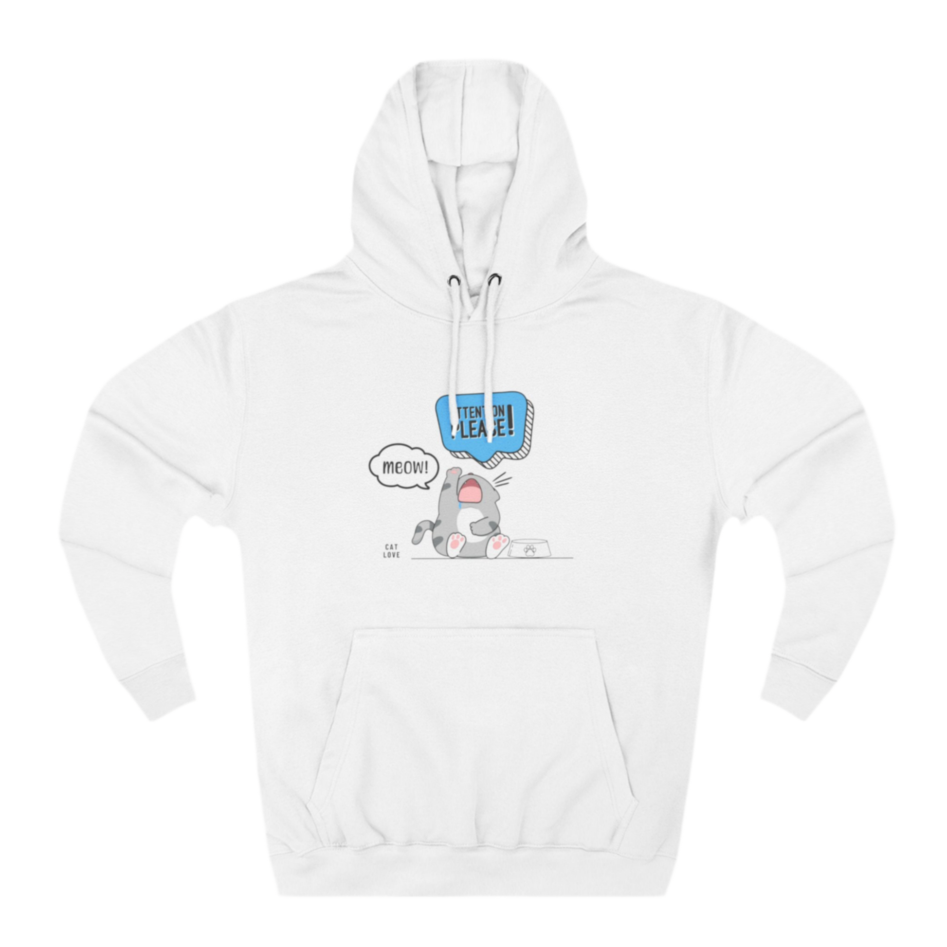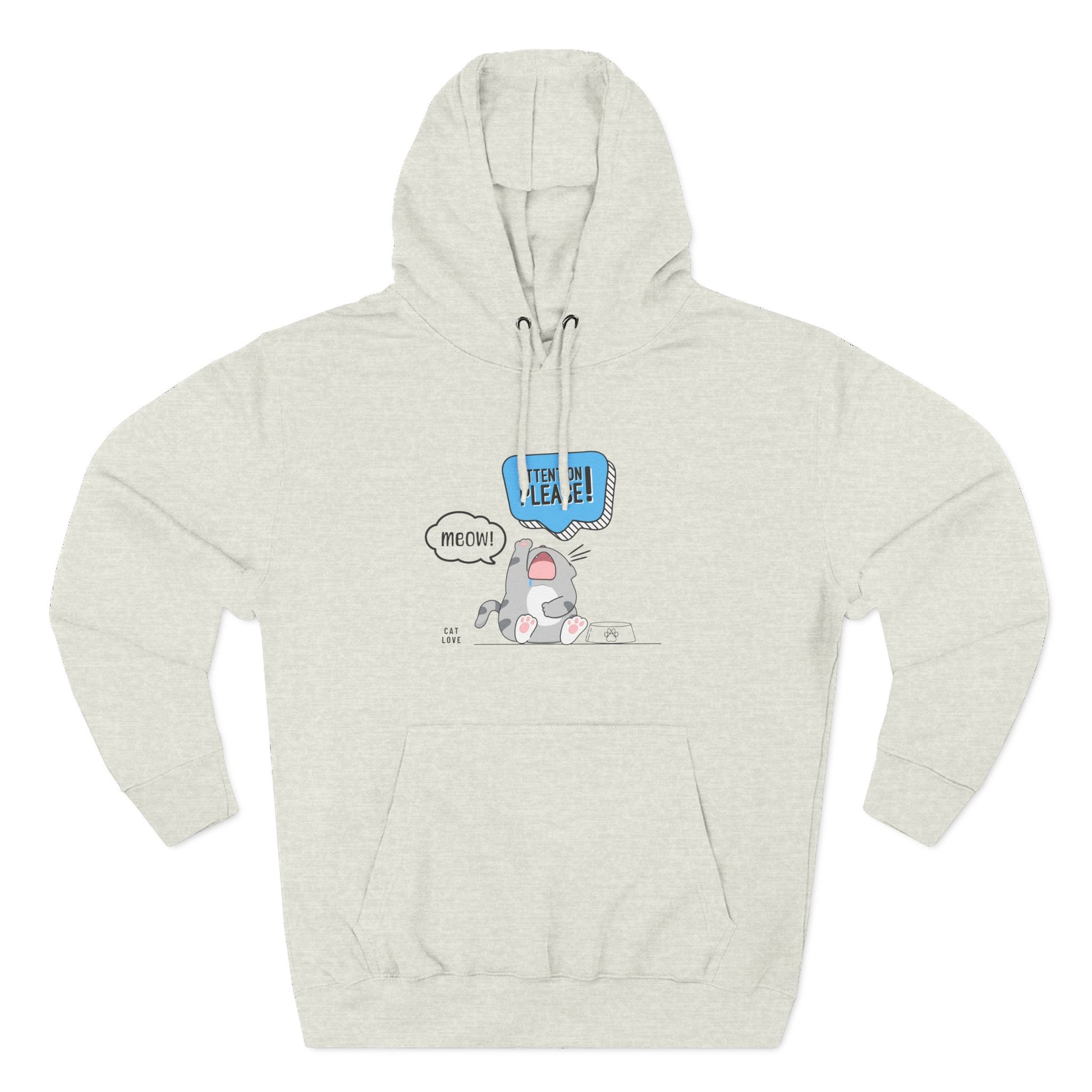 Your cat doesn’t whisper when it’s hungry—they yell. Loudly. This hoodie is for everyone who’s been personally summoned by an empty bowl and a dramatic meow. Featuring a bold cartoon graphic with comic-style flair, this cozy fleece hoodie wraps you in warmth and sarcasm at once. For cat lovers who get it—because you live it.