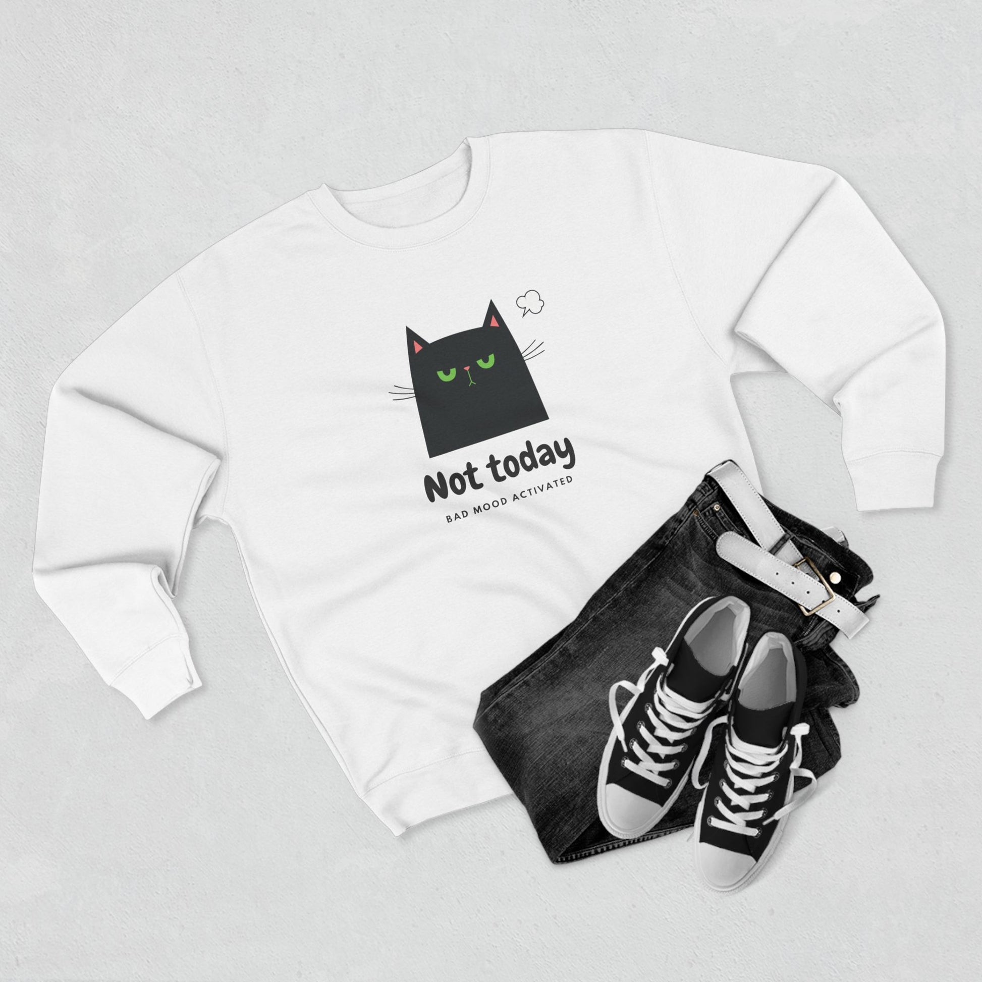Not Today Cat Crewneck Sweatshirt — Bad Mood Activated