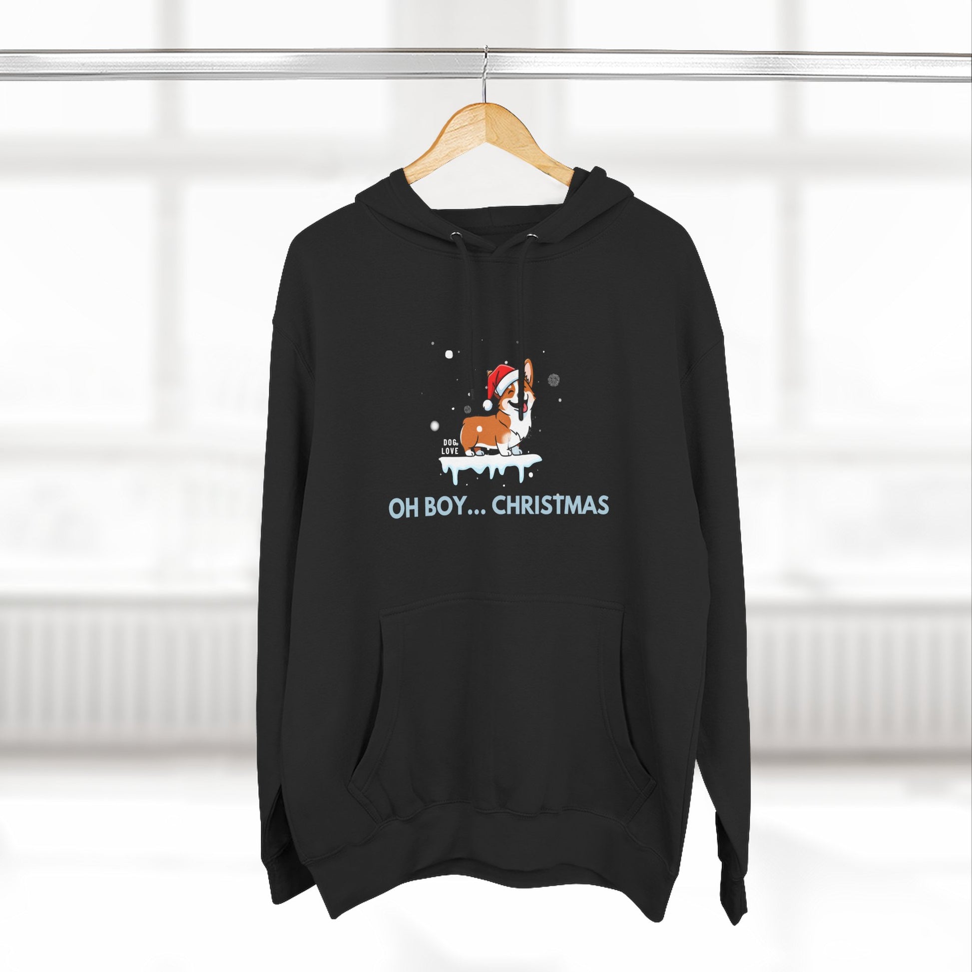 Bring some holiday cheer (and a whole lot of fluff) with this Oh Boy… Christmas hoodie! Featuring a joyful corgi in a Santa hat, this comfy unisex hoodie is perfect for festive walks, gift wrapping marathons, or just chilling with your four-legged friend. Snowflakes. ❄️🐾